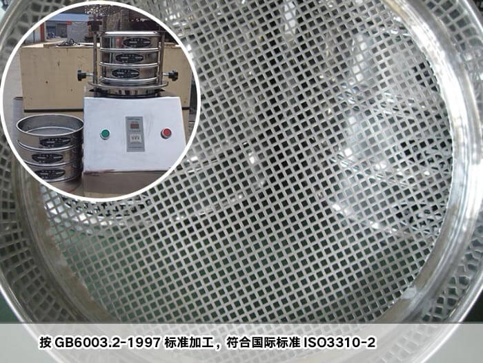 沖孔板試驗篩,按GB6003.2-1997標準加工。符合國際標準ISO3310-2:1990 R20/3,R20,R40/3系列。同時我公司也生產(chǎn)與φ200標準試驗篩配套的拍擊式試驗篩機、標準篩機。拍擊式試驗篩機、標準篩機符合國家標準,最多可安裝8層標準振動篩,設備裝有定時器可定時關機,保證每次生產(chǎn)或試驗的一致性。