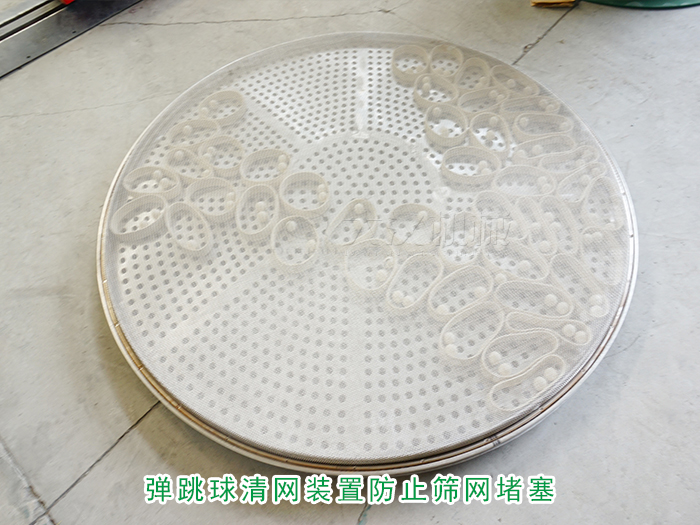 普通圓形篩分設(shè)備的清網(wǎng)裝置是彈跳球清網(wǎng)裝置,在物料篩分運行過程中不斷地拍擊篩網(wǎng),防止篩網(wǎng)遇到顆粒狀物料堵塞