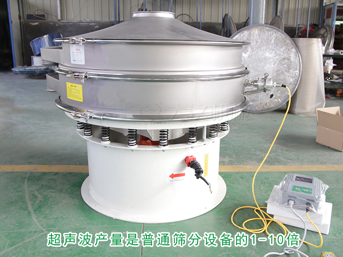 由于超聲波振動篩裝有獨特的清網(wǎng)裝置,所以產(chǎn)量是普通篩分設(shè)備的1-10倍.