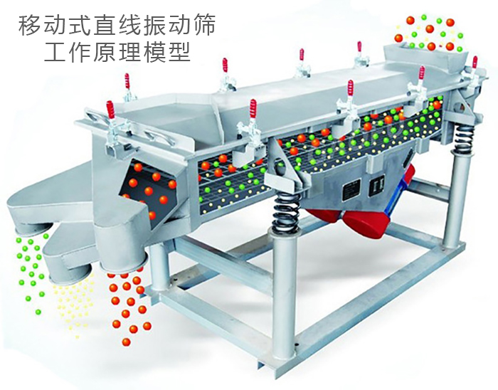 移動(dòng)直線振動(dòng)篩也叫移動(dòng)式直線振動(dòng)篩為雙振動(dòng)電機(jī)驅(qū)動(dòng)。當(dāng)兩臺(tái)振動(dòng)電機(jī)做同步、反向旋轉(zhuǎn)時(shí),其偏心塊所產(chǎn)生的激振力在平行于電機(jī)軸線的方向相互抵消,在垂直于電機(jī)軸的方向疊為一合力,因此篩機(jī)的運(yùn)動(dòng)軌跡為一直線。