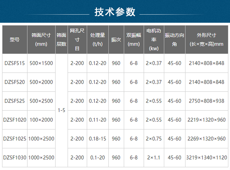 直線振動(dòng)篩、超聲波振動(dòng)篩:型號(hào)參數(shù)全